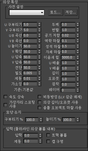 의상 특성 매개변수를 나중에 로드할 파일에 저장합니다. 기본적으로 모든 천 사전 설정 파일은 ₩scenes₩cloth 폴더에 저장됩니다.