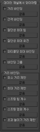 - 실수 데이터 채널은 파티클의 거리 바인딩 값을 정의합니다.