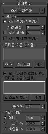 - 크기제어 파티클의 영향 거리는 파티클 모양에서 가장 긴 치수의 길이에 크기 % 요소를 곱한 값입니다.