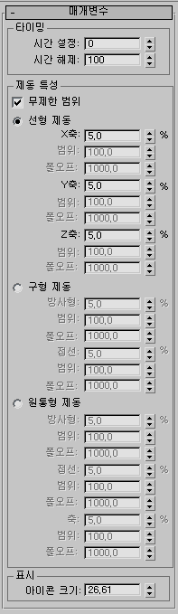 선형 제동이 적용되는 X, Y 또는 Z 범위 밖의 거리를 지정합니다. 제동은 범위 거리에서 가장 강력하고, 폴오프 한계까지 선형적으로 줄어들며, 그 밖에서는 효과가 없습니다. 폴오프는 범위 밖에서만 유효하나 아이콘의 중앙으로부터 측정하며 항상 범위 값과 동일한 최소값을 갖습니다. 무제한 범위를 해제한 경우에만 유효합니다.
