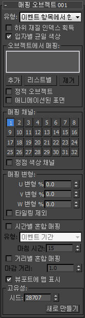 이 그룹의 설정은 매핑 변형 그룹에 있는 U 변형, V 변형 및 W 변형 매개변수의 임의화를 변경합니다.