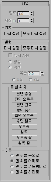 선택한 패널의 메시 밀도를 제어합니다. 이 값은 주 매개변수 롤아웃