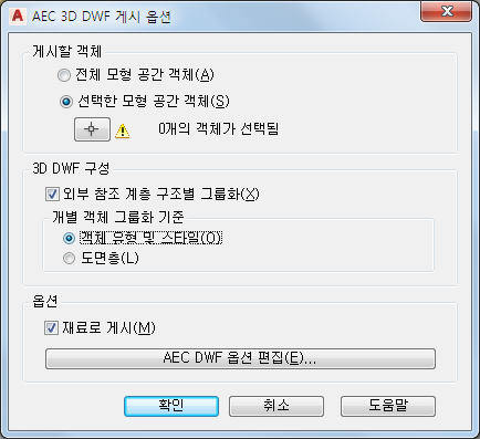 6. DWG 파일의 재료 정의를 DWF 또는 DWFx 파일에 포함하려면 재료로 게시를 선택합니다.