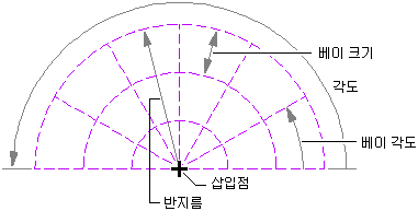 그리드의 내부 반지름 지정 | X 축을 확장한 후 내부 반지름에 값을 입력합니다. |
