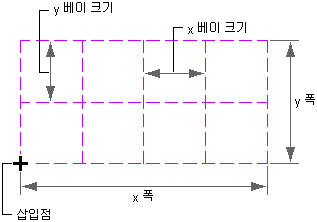 Y 방향을 따라 베이 간격이 균등한 그리드 배치 | Y 축을 확장하고 배치 유형에서 균등히 간격두기를 선택한 후 베이 개수에 값을 입력합니다. |
