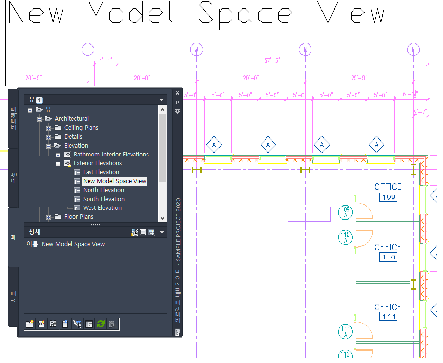새 모형 공간 뷰는 작성된 뷰 도면 아래에 나열됩니다.