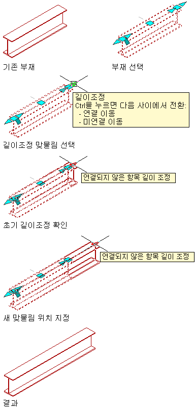 다음 과정에 따라 주요 구조 부재의 길이를 변경하십시오. 또한 특성 팔레트에서 주요 구조 부재 길이도 변경할 수 있습니다.