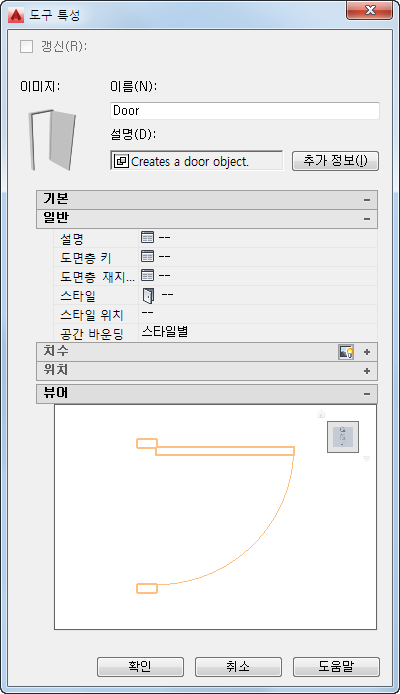 도구 특성에 포함된 객체 뷰어