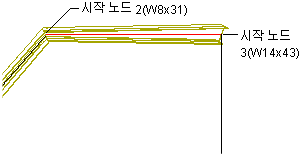 다음 과정에 따라 고정 프레임 부재의 세 번째 세그먼트에 다른 시작 및 끝 쉐이프를 지정하여 고정 프레임의 두 번째 래프터를 작성하십시오.