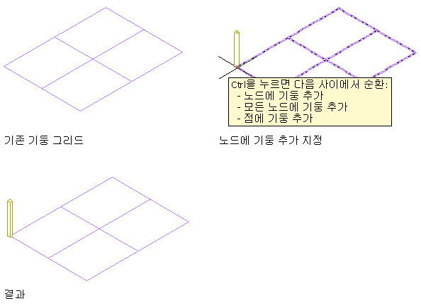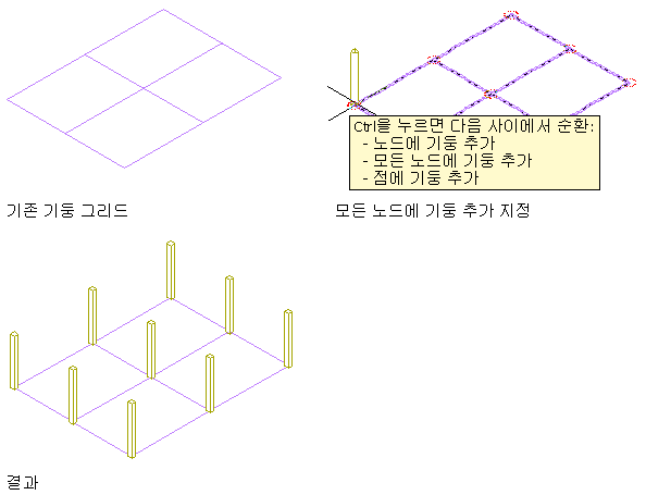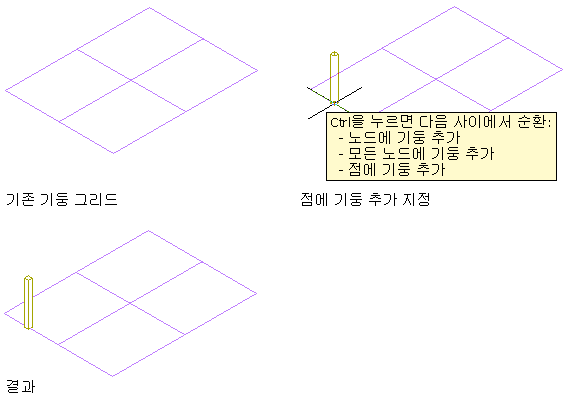 | 그리드의 모든 노드에 기둥 추가 | Ctrl 키를 누르고 클릭합니다. |