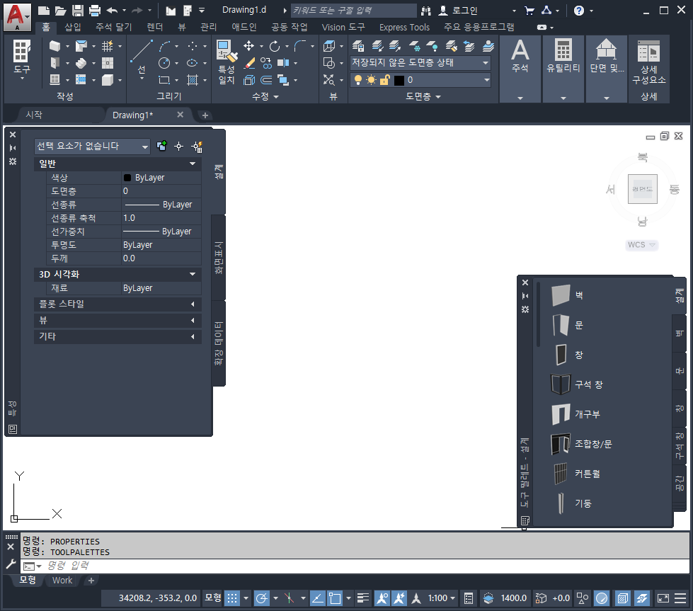 AutoCAD Architecture Toolset 작업공간의 기본 구성