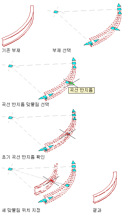 그립이 있는 곡선 빔 주요 구조 부재의 곡선 반지름 변경