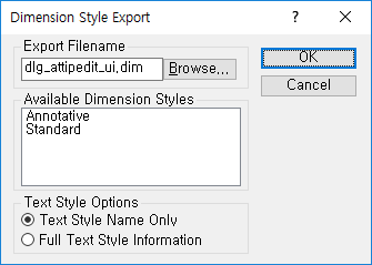| Text Style Options | 치수의 전체 문자 스타일 정보 또는 문자 스타일 이름만 ASCII 파일에 저장합니다. |