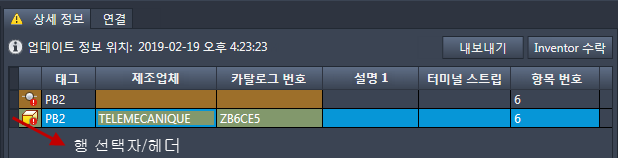 링크된 Inventor 구성요소와 일치시키려면 구성요소 값을 업데이트합니다.