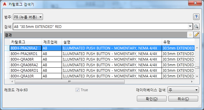 주: 조립품 리스트 값에 의해 정의되는 부분조립품 항목은 검색 결과에 포함되지 않습니다. 카탈로그 검색기의 편집 모드를 사용하여 부분조립품 항목을 보고 편집합니다.