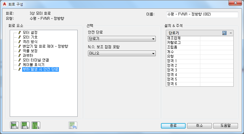 N.O. 보조 접점 포함에서 아니오를 선택합니다.