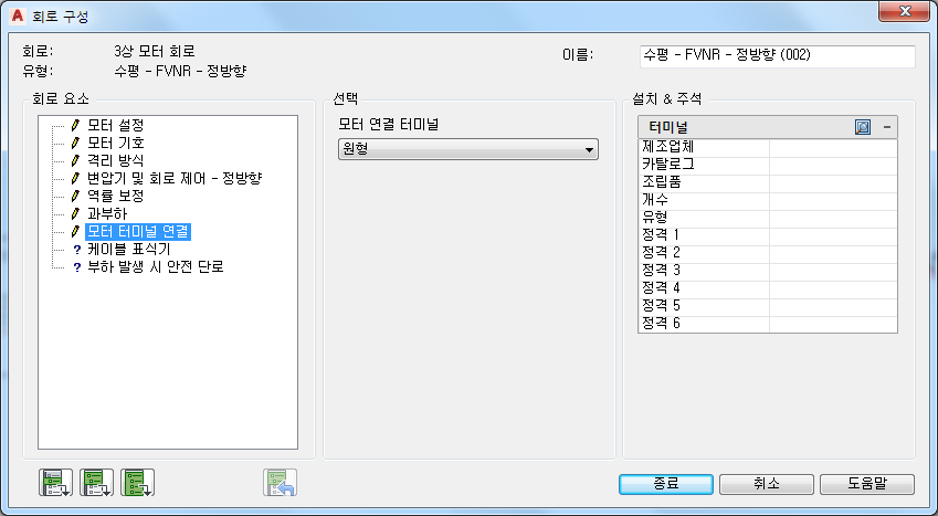 선택 섹션에서 모터 연결 터미널로 원형을 선택합니다.