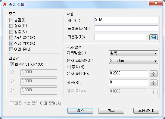 - 명령 프롬프트에 ATTDEF를 입력하여 속성 정의 객체를 삽입합니다.