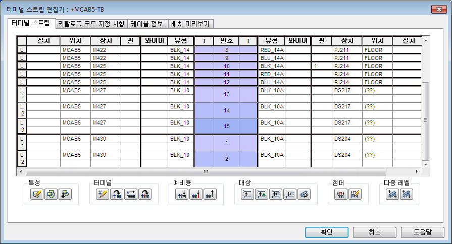 터미널 스트립 편집기를 사용하여 터미널을 관리하고, 터미널 특성을 편집하고, 터미널을 연관시키고, 그래픽 터미널 스트립을 삽입합니다.