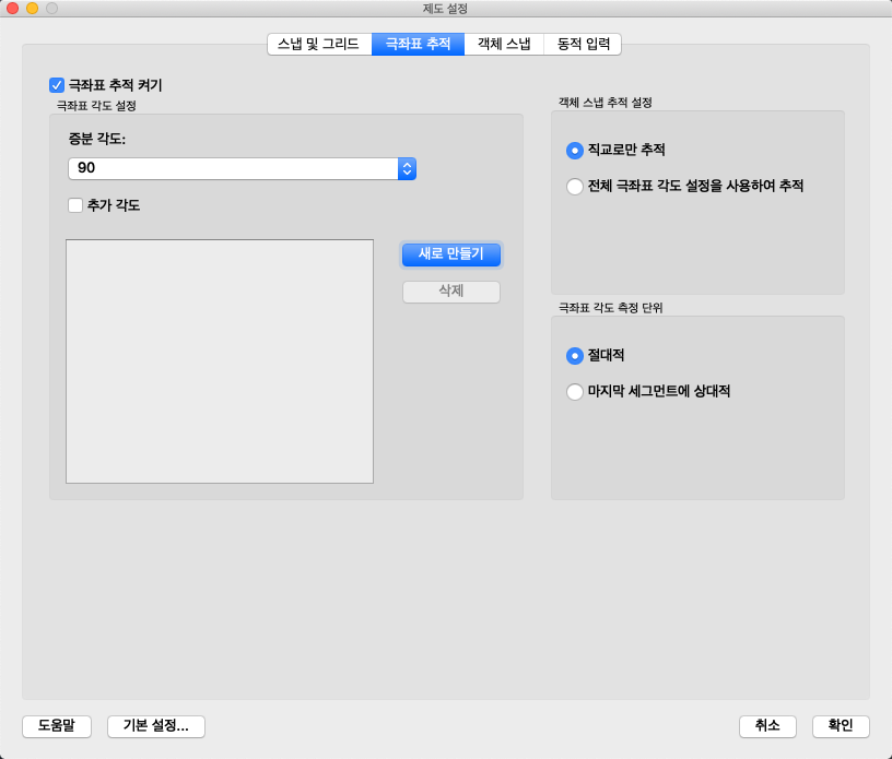 극좌표 추적 정렬 각도가 측정되는 기준을 설정합니다.