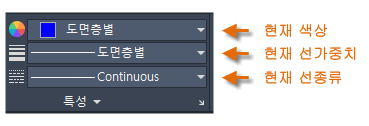 색상 및 선종류와 같은 특성을 개별 객체에 지정하거나 도면층에 지정된 기본 특성으로 지정할 수 있습니다.