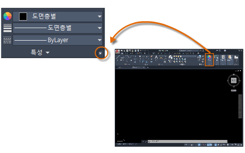 특성 팔레트는 필수 도구입니다. PROPERTIES 명령(명령 윈도우에서 PR 입력)을 사용하거나, Ctrl + 1을 누르거나, 홈 탭의 특성 패널에 있는 작은 화살표를 클릭하는 등 여러 방법 중에서 원하는 방법을 사용하여 특성 팔레트를 열 수 있습니다.