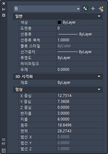 AutoCAD LT에서 AutoCAD 객체의 특성을 볼 때 일부 특성을 사용하지 못할 수 있습니다.