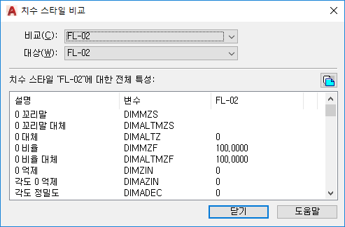 DIMSTYLE(명령) 찾기: 치수 스타일 선택 > 비교