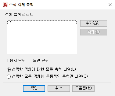 선택한 주석 객체에 지원되는 축척을 추가 또는 삭제합니다.