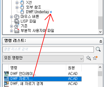 4. 두 번 클릭 동작에 추가할 명령을 명령 리스트 창에서 <파일 이름>의 사용자화 창으로 끕니다.