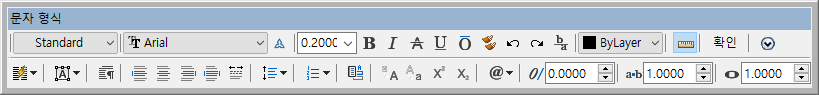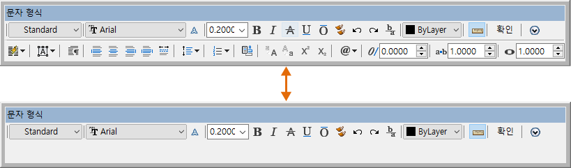 문자 형식 도구막대의 표시를 조정합니다. 이 옵션은 MTEXTTOOLBAR 시스템 변수를 설정합니다. (단일 행 문자에 대해서는 사용할 수 없습니다.)