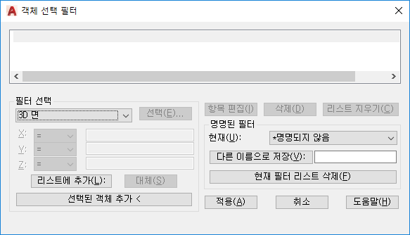 도면에 있는 선택된 한 객체를 필터 리스트에 추가합니다.