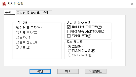 지시선 주석을 재사용하기 위한 옵션을 설정합니다.