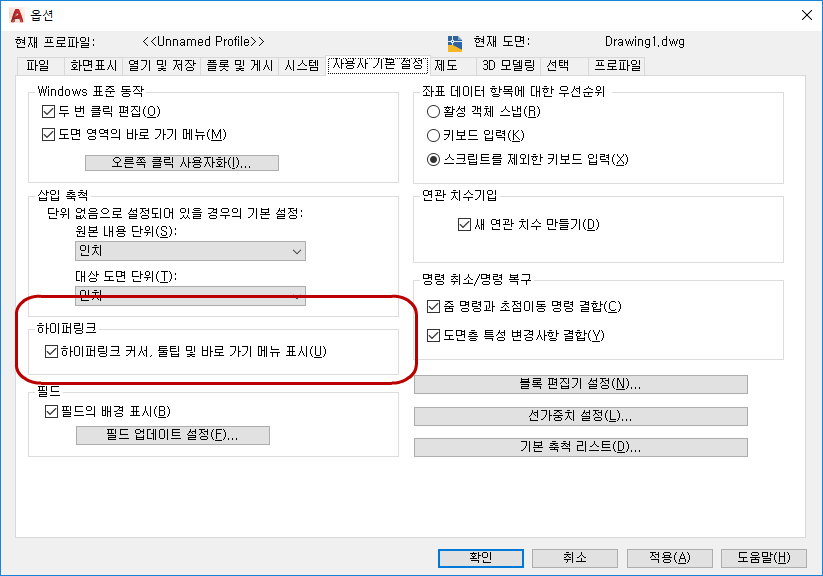 옵션 대화상자의 사용자 기본 설정 탭에서 하이퍼링크 정보 표시를 사용하도록 설정합니다.