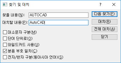 MTEXT(명령) 찾기: 문자 편집기 또는 MTEXT 바로 가기 메뉴에서 찾기 및 대치를 선택합니다.