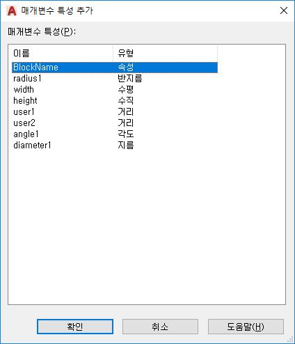 블록 특성 테이블에 추가할 수 있는 매개변수의 이름을 표시합니다.