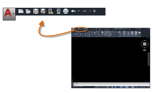 도면 영역 위쪽에는 표준 탭 리본이 표시됩니다. 홈 탭에서 이 안내서에 나오는 거의 모든 명령에 액세스할 수 있습니다. 또한 아래에 표시된 빠른 액세스 도구 모음에는 새로 만들기, 열기, 저장, 인쇄 및 명령취소 등의 자주 사용되는 명령이 포함되어 있습니다.