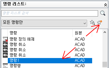 리스트가 필터링되어 로드된 사용자화 파일에 추가된 사용자 정의 명령만 표시됩니다.