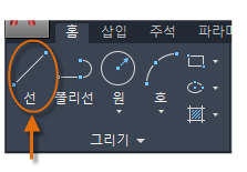 선은 AutoCAD 도면에서 가장 기본적이고 자주 사용되는 객체입니다. 선을 그리려면 선 도구를 클릭합니다.