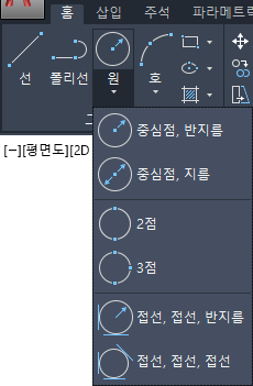 CIRCLE 명령의 기본 옵션으로 중심점과 반지름을 지정해야 합니다.