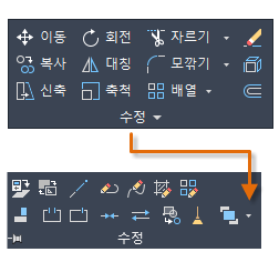 리본의 수정 패널에서 여러 그리기 순서 옵션에 액세스할 수 있습니다. 수정 패널을 클릭하여 확장한 다음 아래에 표시된 대로 아래쪽 화살표를 클릭합니다.