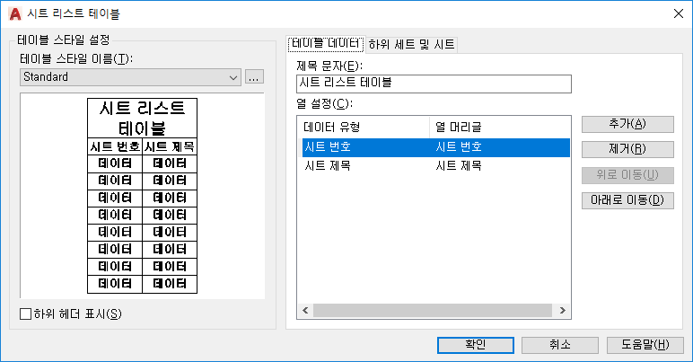 이 테이블은 현재 시트 세트의 모든 시트에 추가될 수 있지만, 일반적으로 제목 시트에 추가됩니다.