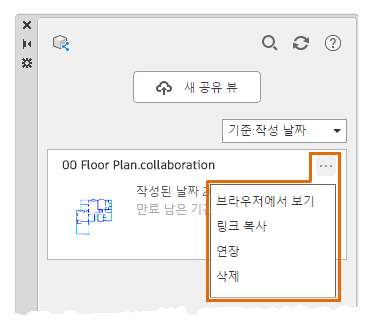 자세히 메뉴에서 공유 뷰를 관리합니다.