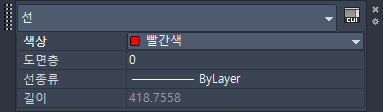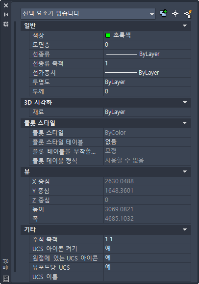 • 선택한 객체가 없는 경우 모든 새 객체에 사용할 현재 특성을 보고 변경할 수 있습니다.
