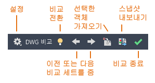이 도구막대는 설정 패널과 이전 및 다음 컨트롤을 제공하는 DWG 비교 도구막대와 유사합니다.