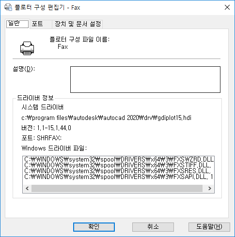 플로터 구성(PC3) 파일에 대한 기본 정보가 들어 있습니다.