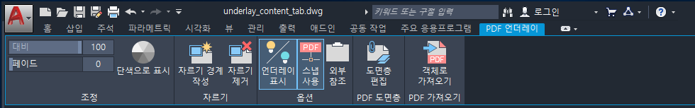 PDF 언더레이를 선택하면 PDF 상황별 탭이 리본에 나타납니다.