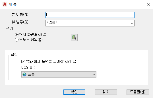 모형 및 배치 뷰에 대해서 새 뷰와 함께 저장할 UCS를 지정합니다.