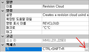 - 특성 창에서 키 상자를 클릭한 다음 […] 버튼을 클릭하여 바로 가기 키 대화상자를 엽니다.