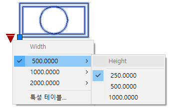 역순 찾기가 설정된 찾기 특성은 동적 블록 참조에 찾기 그립을 추가합니다. 이 그립을 클릭하면 해당 열의 찾기 값 드롭다운 리스트가 표시됩니다. 선택한 리스트 항목의 해당 입력 특성 값은 블록 참조에 지정됩니다.
